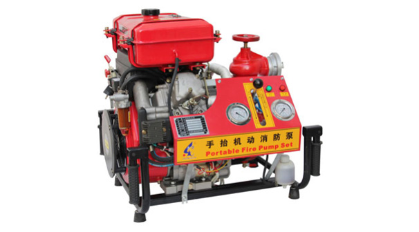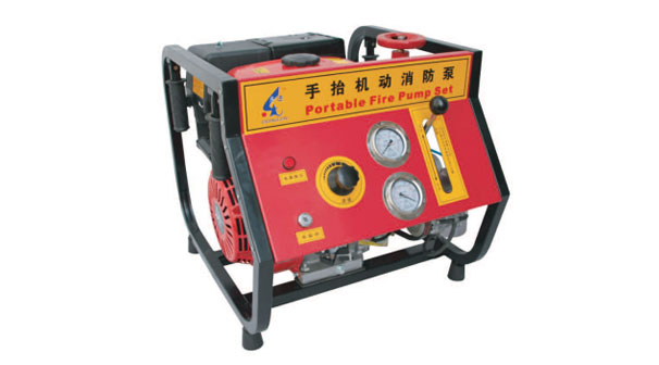 手抬消防泵,是可以用人力手抬搬運(yùn)并與輕型發(fā)動(dòng)機(jī)組裝的消防泵組。