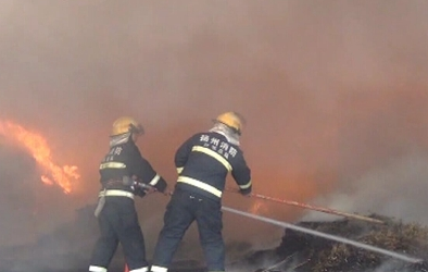 江蘇省揚(yáng)州市一處堆放竹條的倉(cāng)庫(kù)突然起火,風(fēng)干的竹條大面積燃燒,濃煙籠罩,當(dāng)?shù)叵啦块T接警,立即前往撲救。